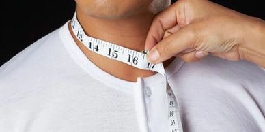 Measure around the lower part of your neck, placing one finger between tape measure and neck